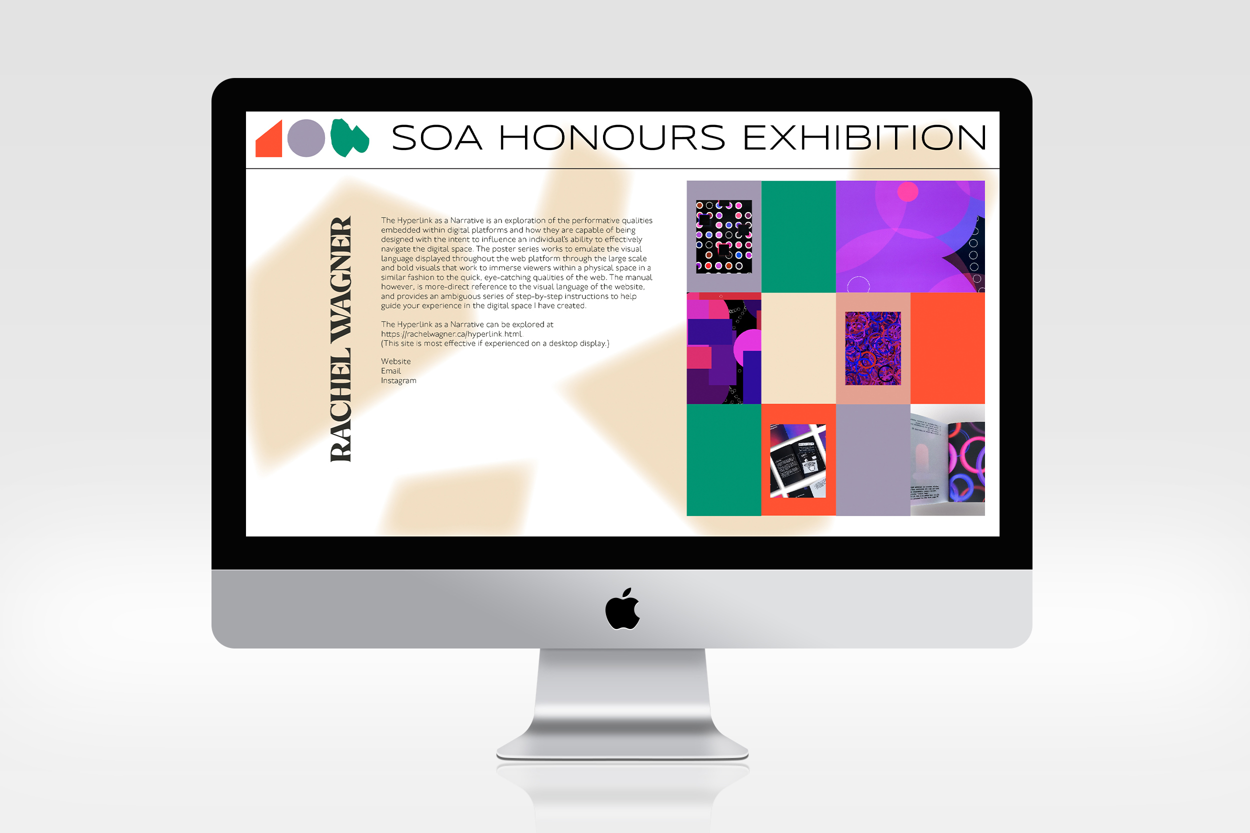 To assist in the promotion of the BFA Exhibition website, I was tasked to create images and graphics to be used on social media and email lists. At the time in which these images were presented, the site had not yet launched, so I wanted to provide subtle hints regarding the visual language of the site mainly the iconographic elements and grid-like features.